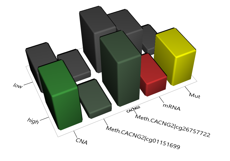 AVM’s patented Data Model blends multiple types of data into a unified, comprehensive representation on-the-fly. For example, blending CNA, Methylation, mRNA and variants data by gene to provide insight into how specific mutations correlate with other biological processes.