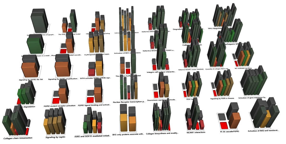 With genomic data, you are able to run pathway analysis and see pathways side-by-side with the loaded data on-the-fly. |
